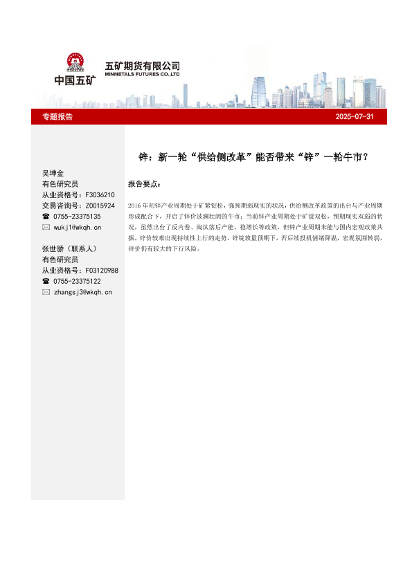 【五矿期货】【20250731】锌:新一轮“供给侧改革”能否带来“锌”一轮牛市?-6页