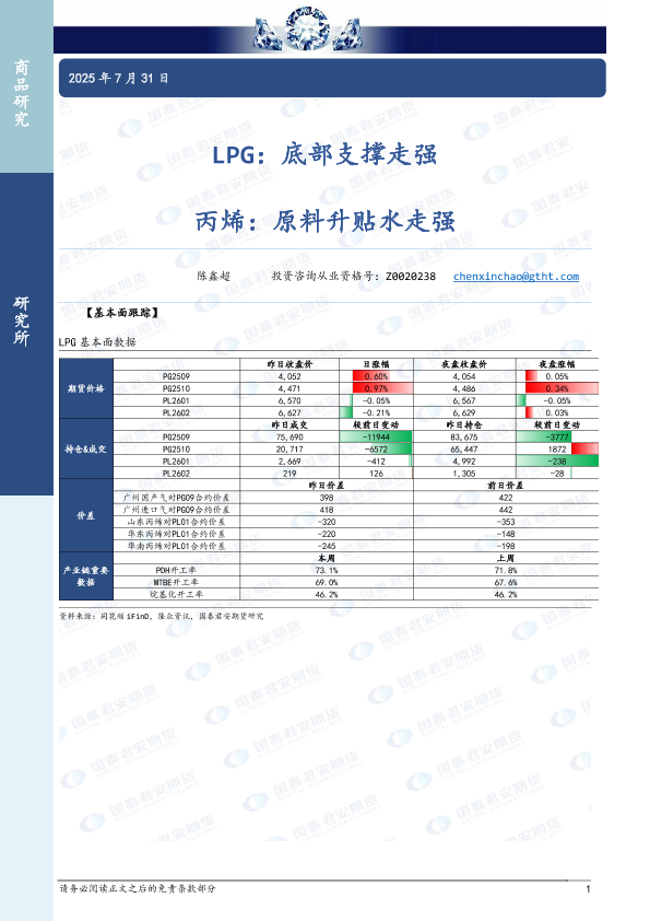 【国泰君安期货】【20250731】LPG_底部支撑走强_丙烯_原料升贴水走强-4页