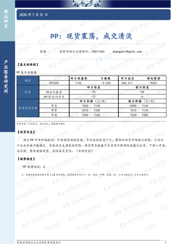 【国泰君安期货】【20250731】PP:现货震荡,成交清淡-2页