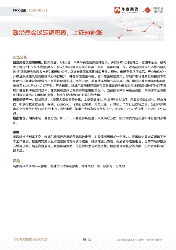 【华泰期货】【20250731】FICC日报_政治局会议定调积极_上证50补涨-12页