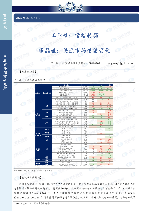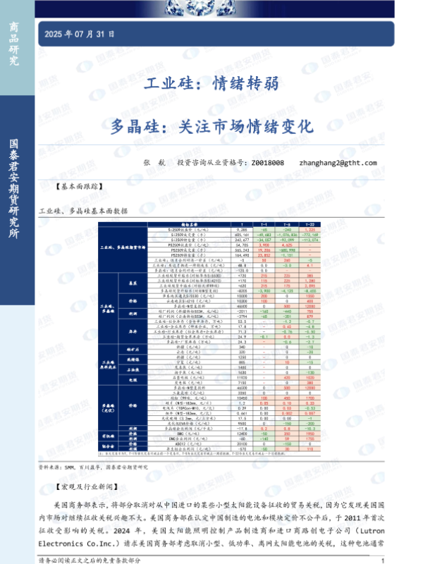 【国泰君安期货】【20250731】工业硅_情绪转弱_多晶硅_关注市场情绪变化-3页