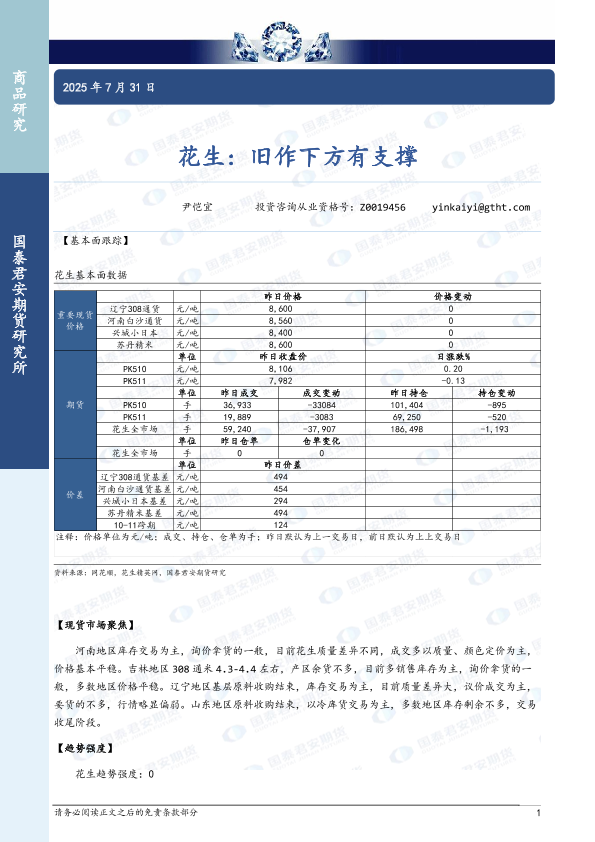 【国泰君安期货】【20250731】花生:旧作下方有支撑-3页
