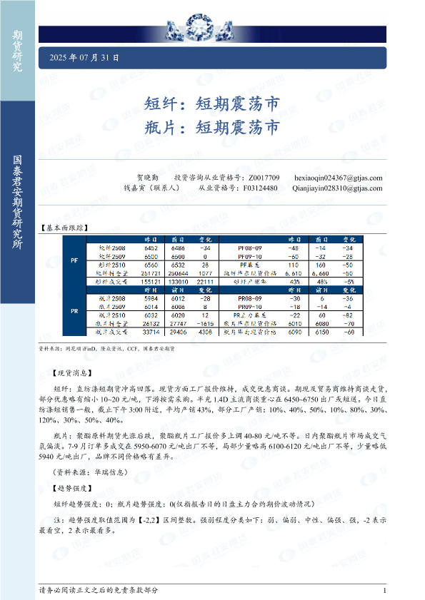 【国泰君安期货】【20250731】短纤_短期震荡市_瓶片_短期震荡市-2页