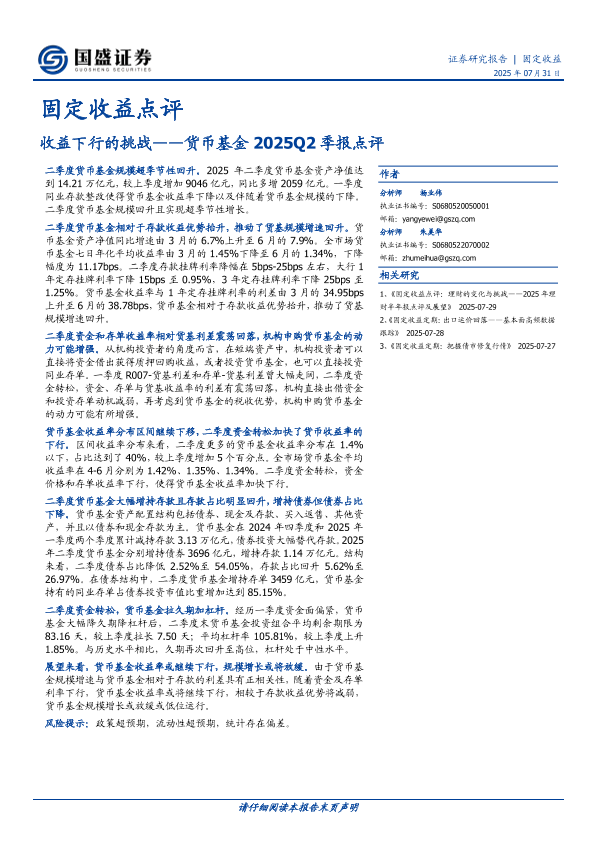 【国盛证券】【20250731】收益下行的挑战——货币基金2025Q2季报点评-8页