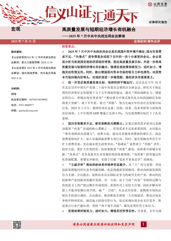 【山西证券】【20250731】2025年7月中共中央政治局会议解读_高质量发展与短期经济增长有机融合-3页