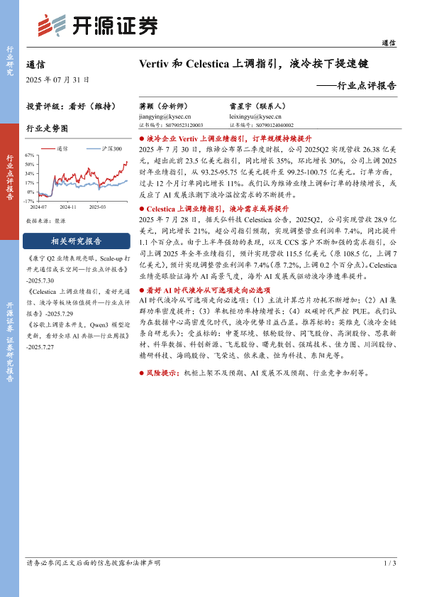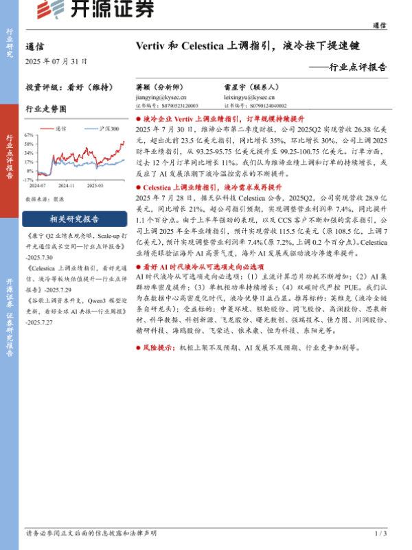 【开源证券】【20250731】Vertiv和Celestica上调指引,液冷按下提速键-3页