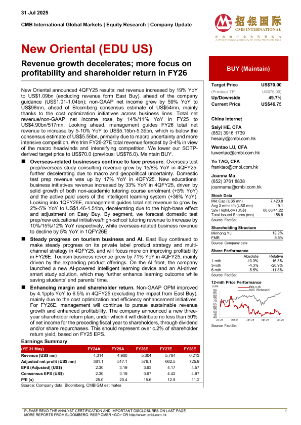 【CMB International Global Markets】【20250731】New Oriental - Revenue growth decelerates; more focus on profitability and shareholder return in FY26-6页