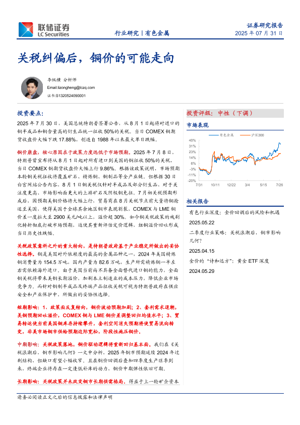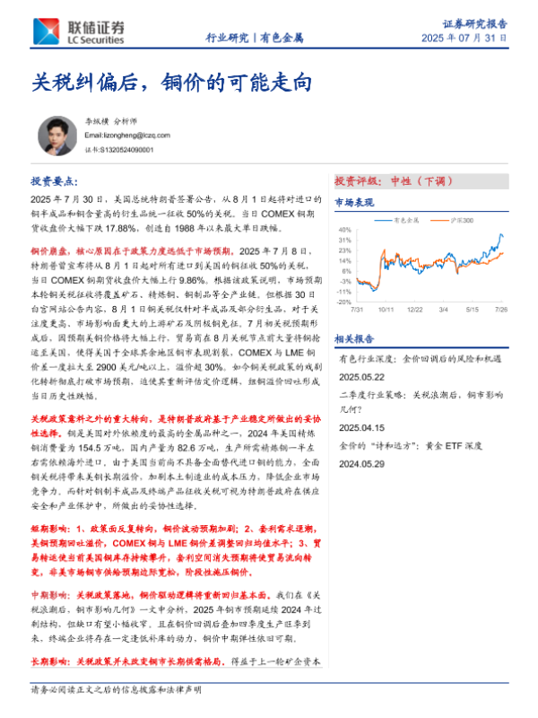 【联储证券】【20250731】关税纠偏后,铜价的可能走向-3页