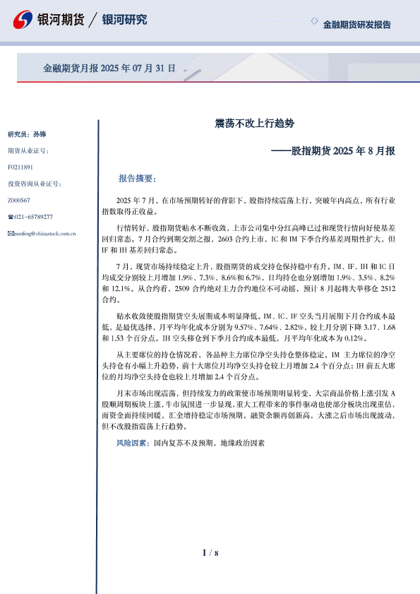 【银河期货】【20250731】股指期货2025年8月报_震荡不改上行趋势-8页