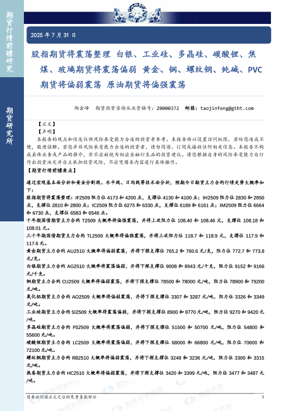 【国泰君安期货】【20250731】期货将震荡整理-33页