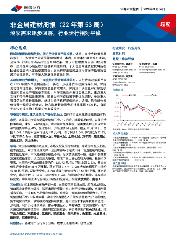 【国信证券】【20230104】非金属建材周报(22年第53周):淡季需求逐步回落,行业运行相对平稳-21页