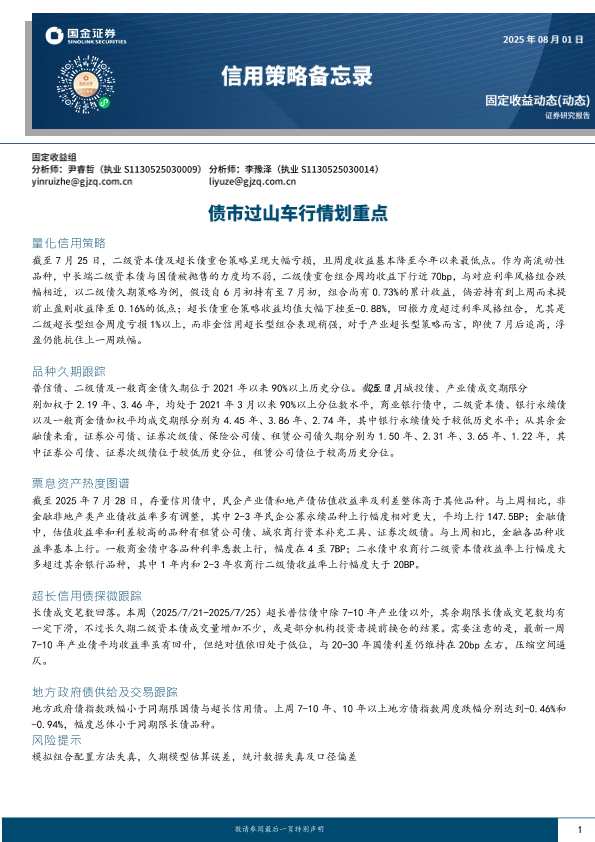 【国金证券】【20250801】信用策略备忘录:债市过山车行情划重点-6页