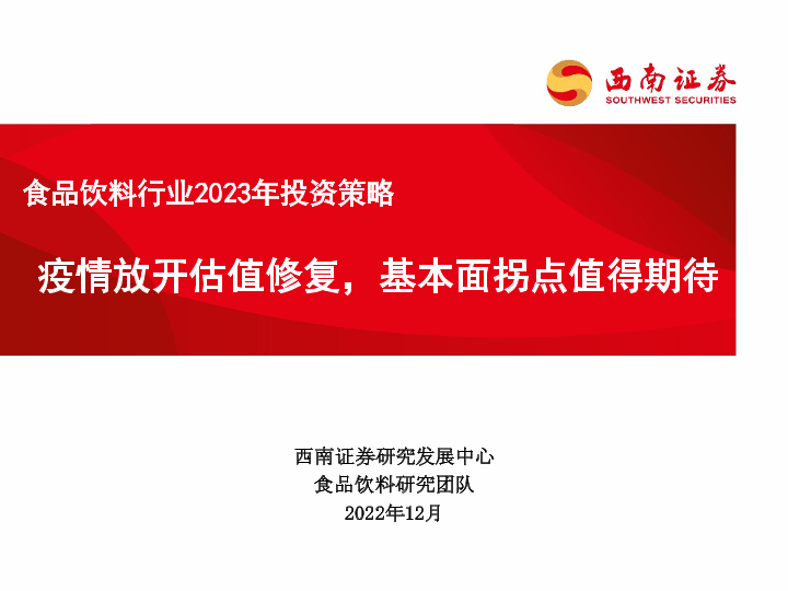 【西南证券】【20221231】食品饮料行业2023年投资策略:疫情放开估值修复,基本面拐点值得期待-72页