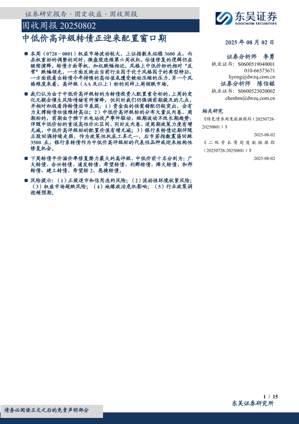 【东吴证券】【20250802】中低价高评级转债正迎来配置窗口期-15页