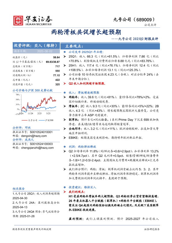 【华安证券】【20250802】九号公司2025Q2财报点评_两轮滑板共促增长超预期-4页