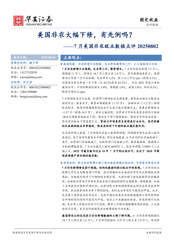 【华安证券】【20250802】7月美国非农就业数据点评_美国非农大幅下修_有先例吗-10页