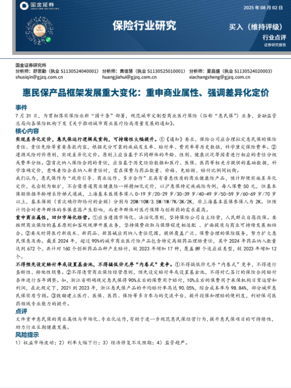 【国金证券】【20250802】保险行业研究_惠民保产品框架发展重大变化_重申商业属性_强调差异化定价-3页