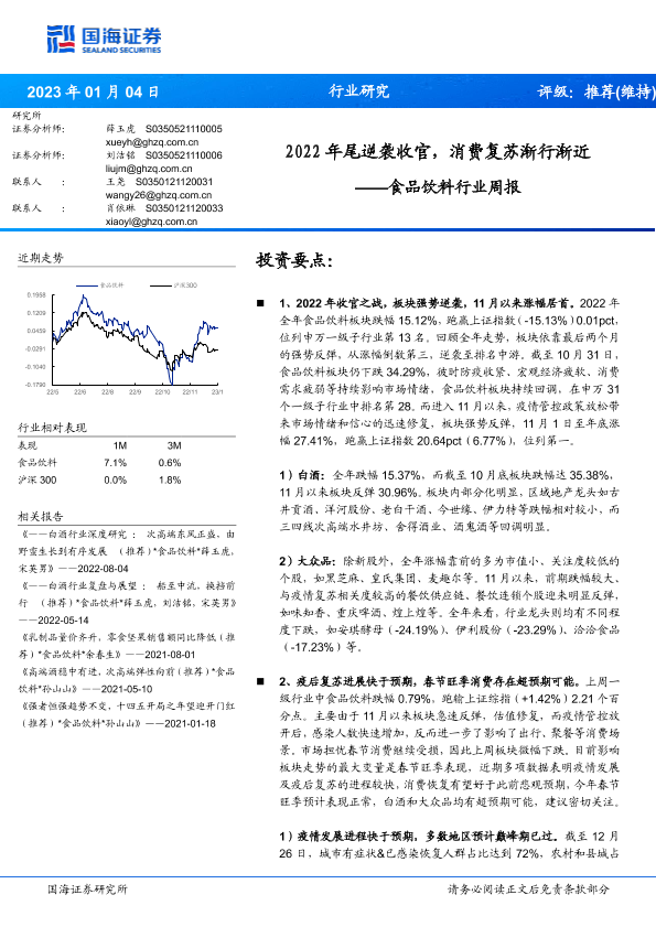 【国海证券】【20230104】食品饮料行业周报:2022年尾逆袭收官,消费复苏渐行渐近-23页