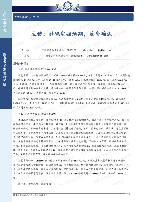 【国泰君安期货】【20250803】生猪:弱现实强预期,反套确认-7页