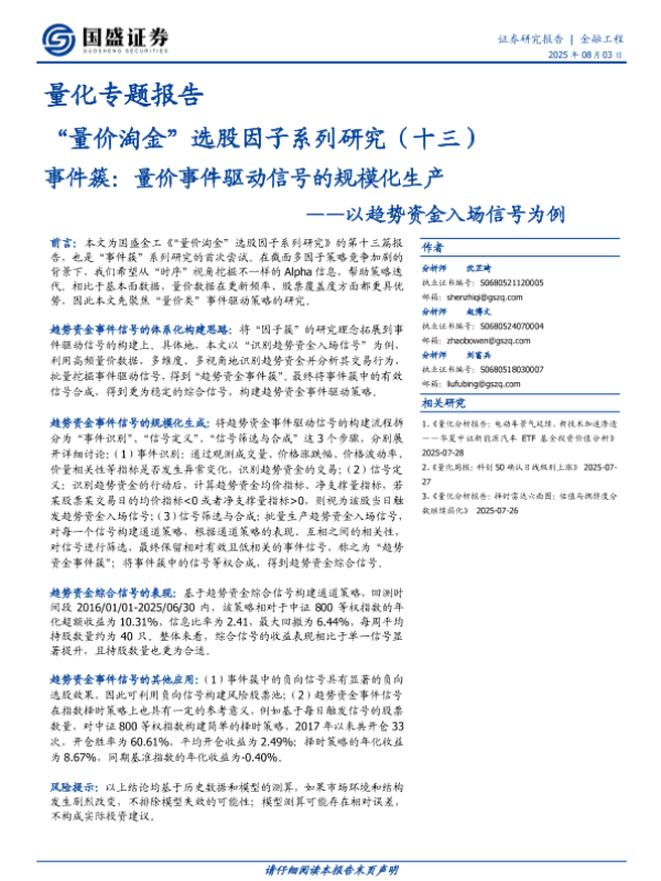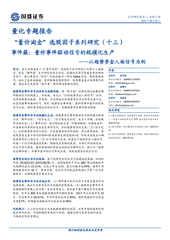 【国盛证券】【20250803】量化专题报告:量价淘金_选股因子系列研究(十三)_事件簇_量价事件驱动信号的规模化生产-以趋势资金入场信号为例-18页