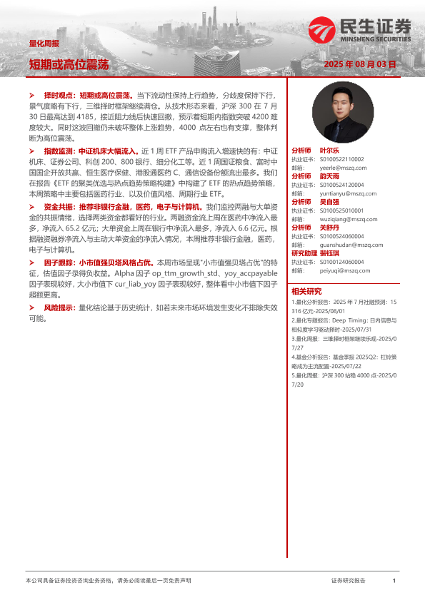 【民生证券】【20250803】量化周报_短期或高位震荡-14页