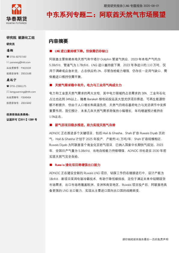 【华泰期货】【20250801】阿联酋天然气市场展望-16页