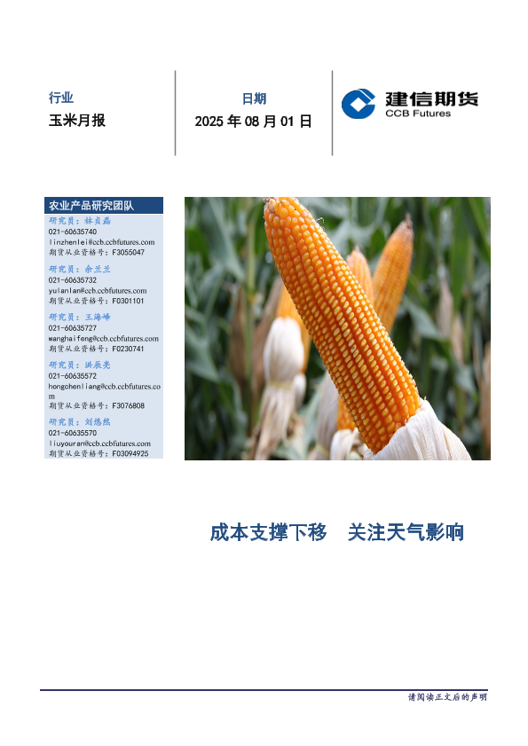 【建信期货】【20250801】玉米月报_成本支撑下移_关注天气影响-16页