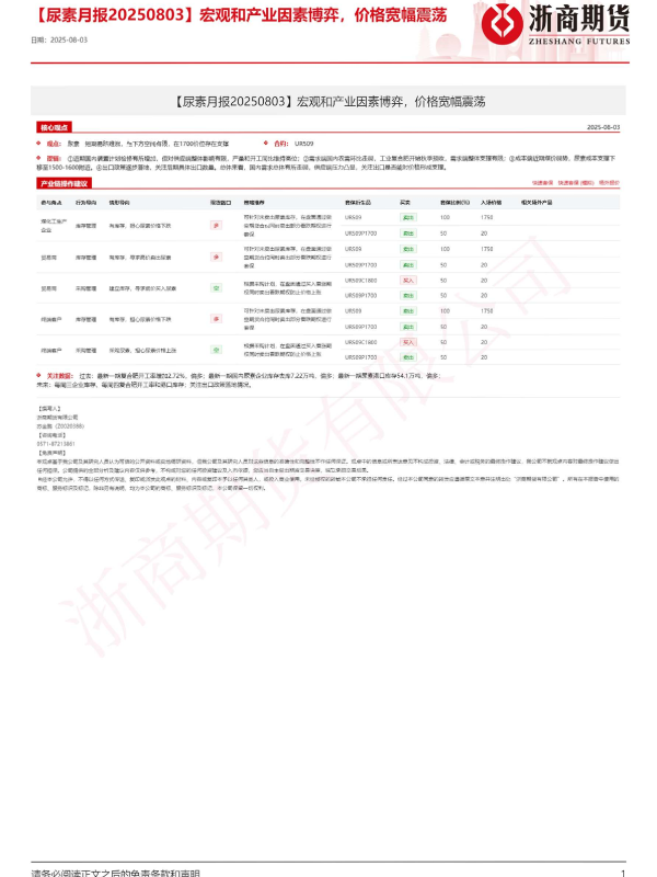 【浙商期货】【20250803】尿素月报_宏观和产业因素博弈_价格宽幅震荡-17页