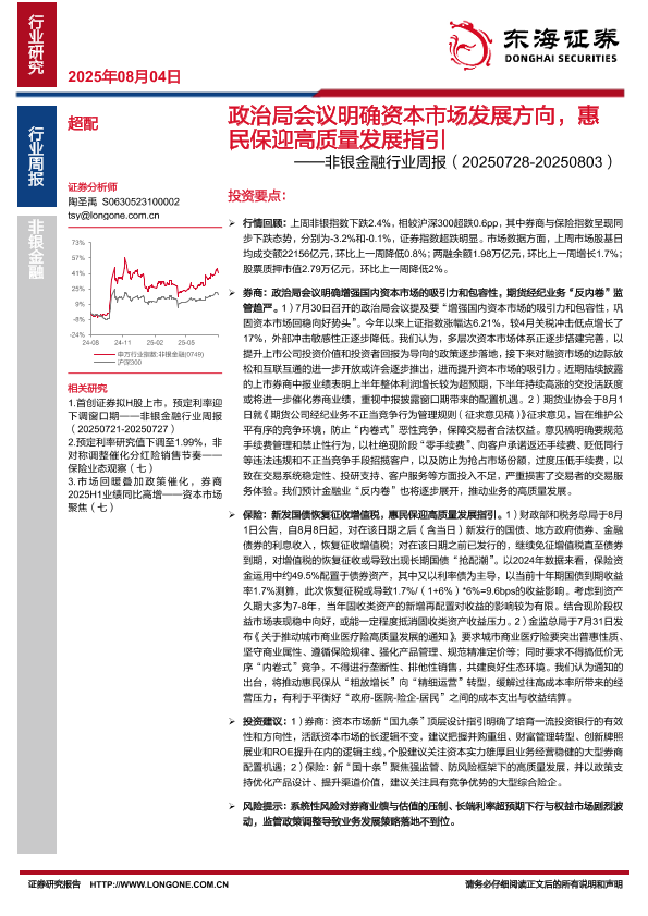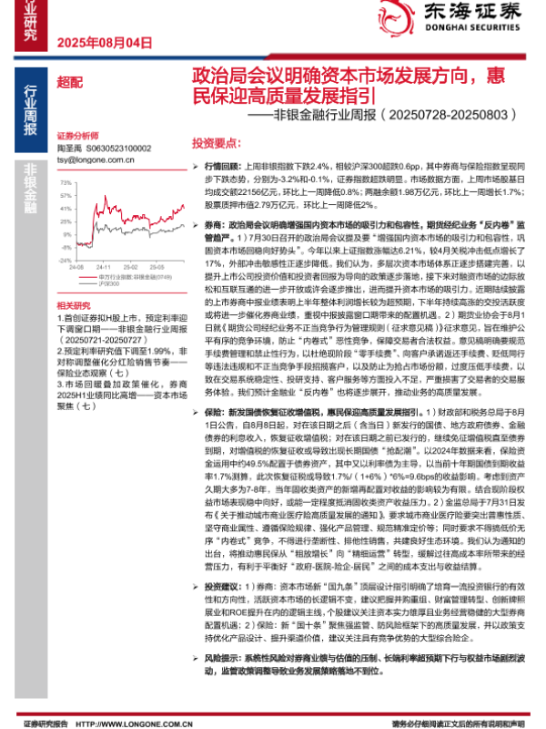 非银金融 惠民保 资本市场 政治局会议 高质量发展