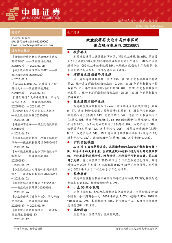 【中邮证券】【20250804】微盘股将再次迎来高胜率区间-30页