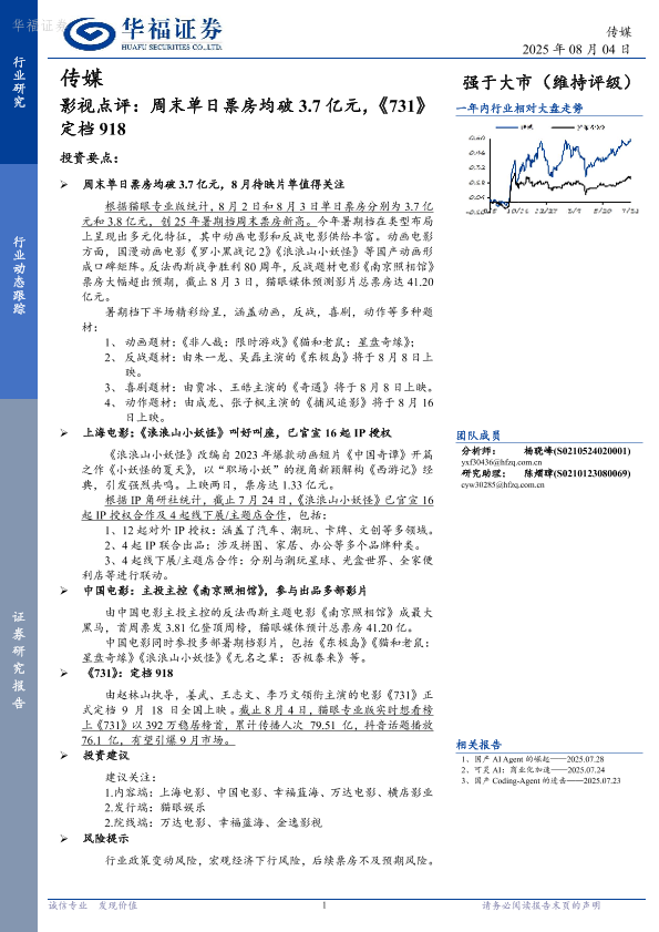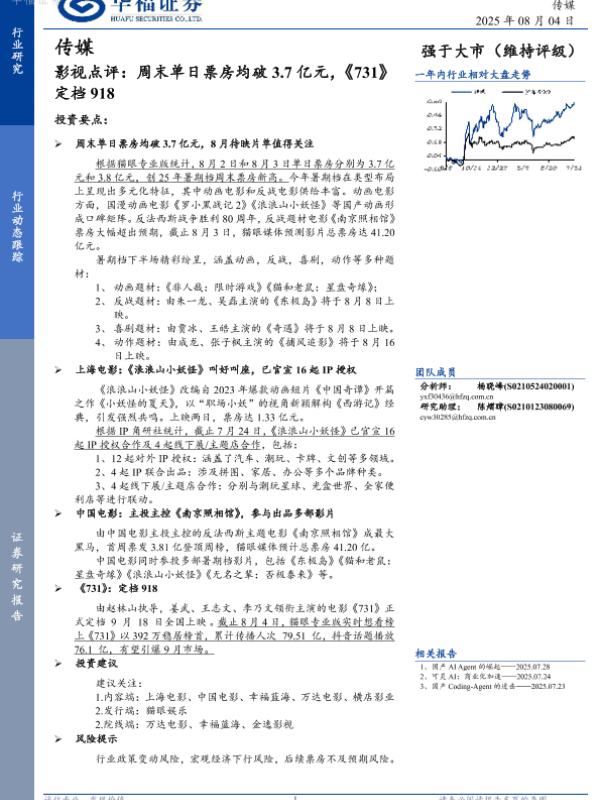 【华福证券】【20250804】传媒影视点评:周末单日票房均破3.7亿元,《731》定档918-2页