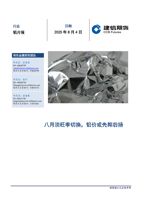 【建信期货】【20250804】八月淡旺季切换_铝价或先抑后扬-14页