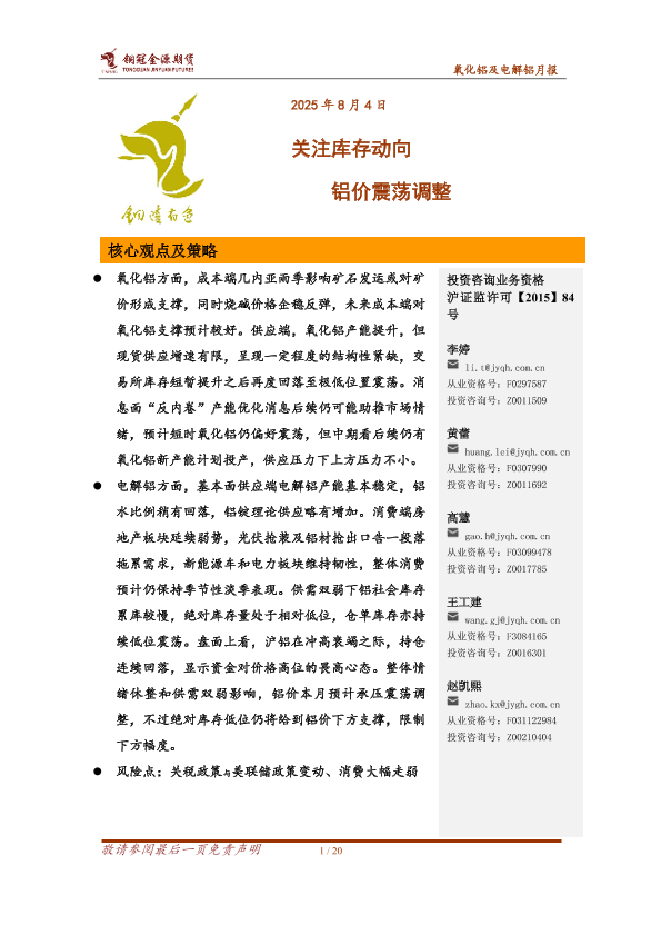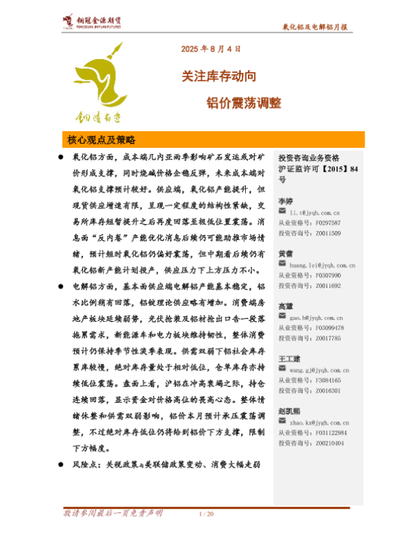【铜冠金源期货】【20250804】氧化铝及电解铝月报_关注库存动向_铝价震荡调整-20页