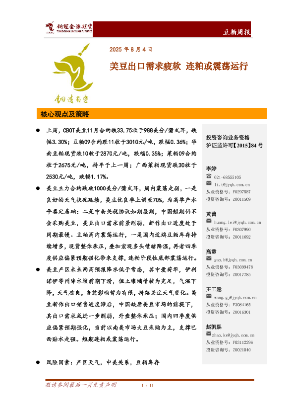 【铜冠金源期货】【20250804】豆粕周报_美豆出口需求疲软_连粕或震荡运行-11页