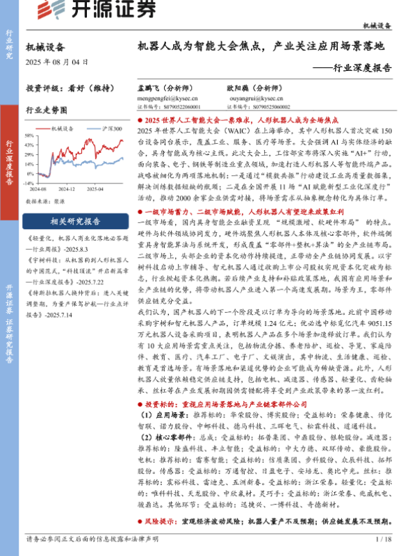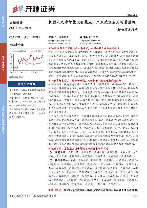 【开源证券】【20250804】机器人成为智能大会焦点_产业关注应用场景落地-18页