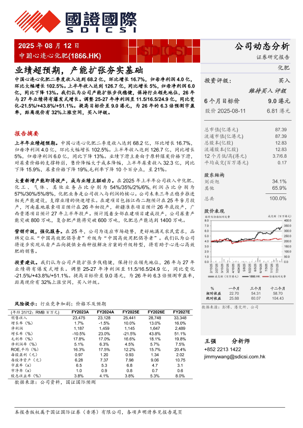 化肥行业 市场预测 股票评级 产能扩张 业绩分析