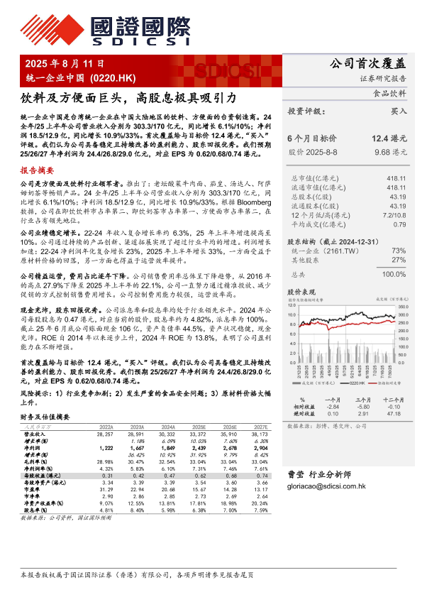 【国证国际】【20250811】饮料及方便面巨头,高股息极具吸引力-26页