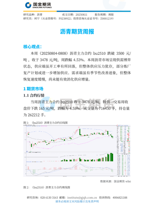 价格走势 期货合约 沥青期货 供需关系 市场分析