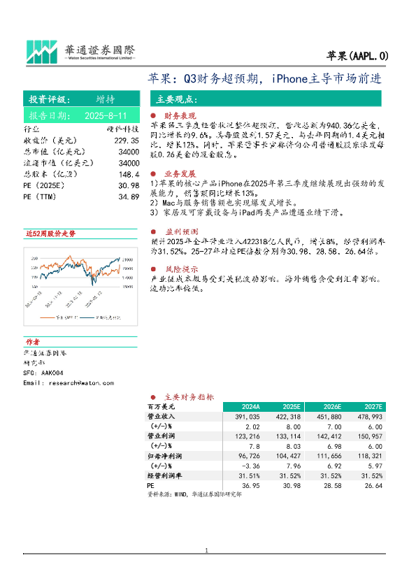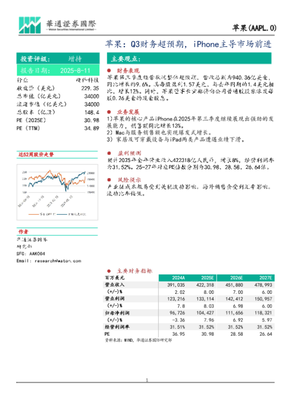 【华通证券国际】【20250811】苹果:Q3财务超预期,iPhone主导市场前进-5页