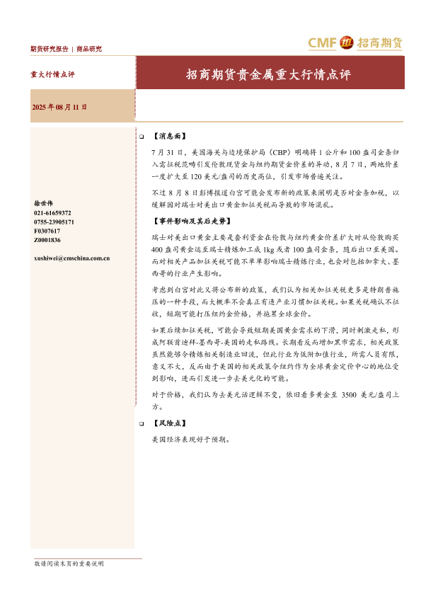 【招商期货】【20250811】贵金属重大行情点评-2页