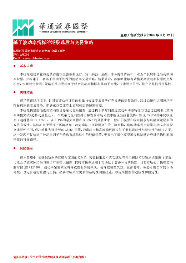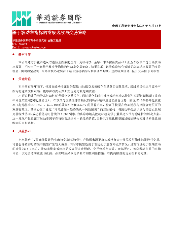 【华通证券国际有限公司研究部金融工程组】【20250812】基于波动率指标的港股选股与交易策略-14页