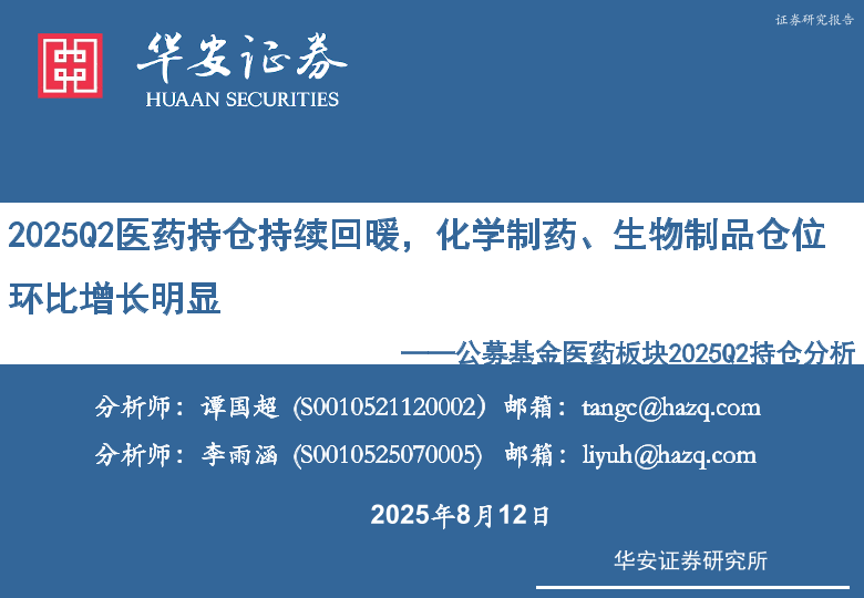 【华安证券】【20250812】2025Q2医药持仓持续回暖_化学制药_生物制品仓位环比增长明显-16页