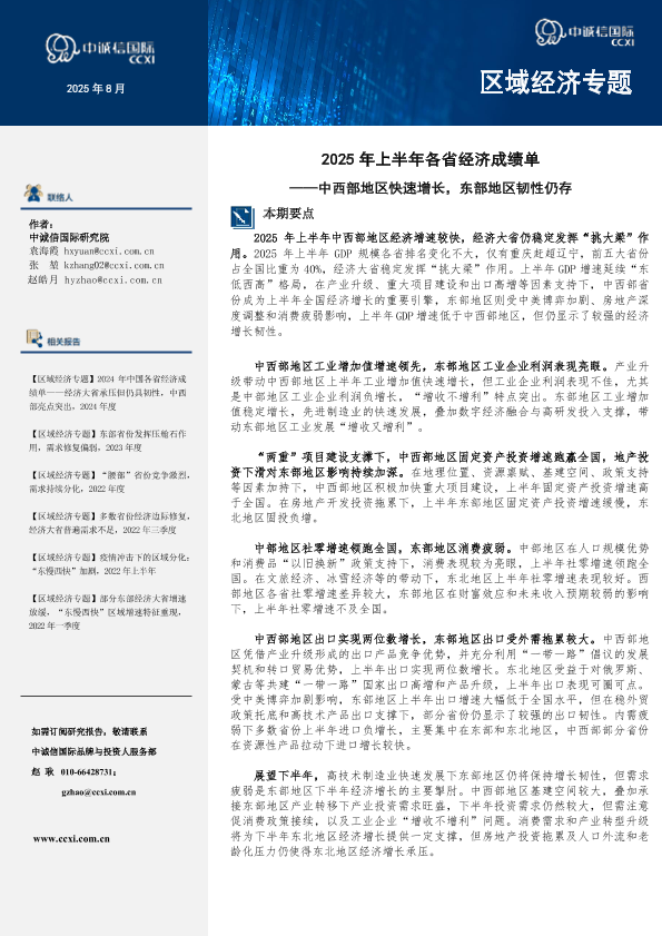 【中诚信国际】【20250813】2025年上半年各省经济成绩单-15页
