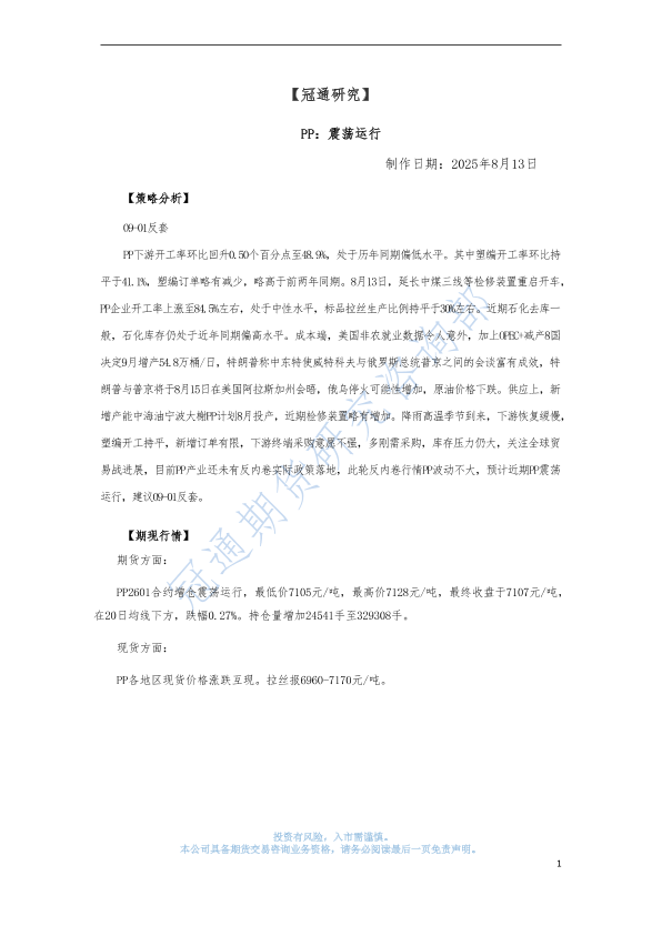 【冠通期货】【20250813】PP:震荡运行-3页
