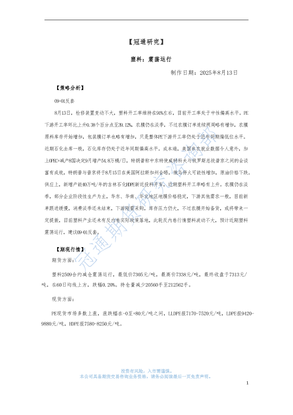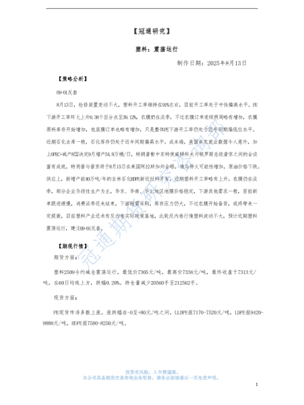 【冠通期货】【20250813】塑料:震荡运行-3页