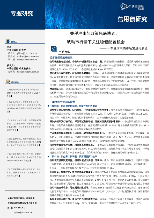 【中诚信国际】【20250813】一季度信用债市场复盘与展望:关税冲击与政策托底博弈,波动市行情下关注稳健配置机会-18页