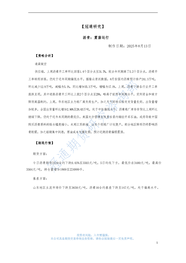 【冠通期货】【20250813】沥青:震荡运行-3页