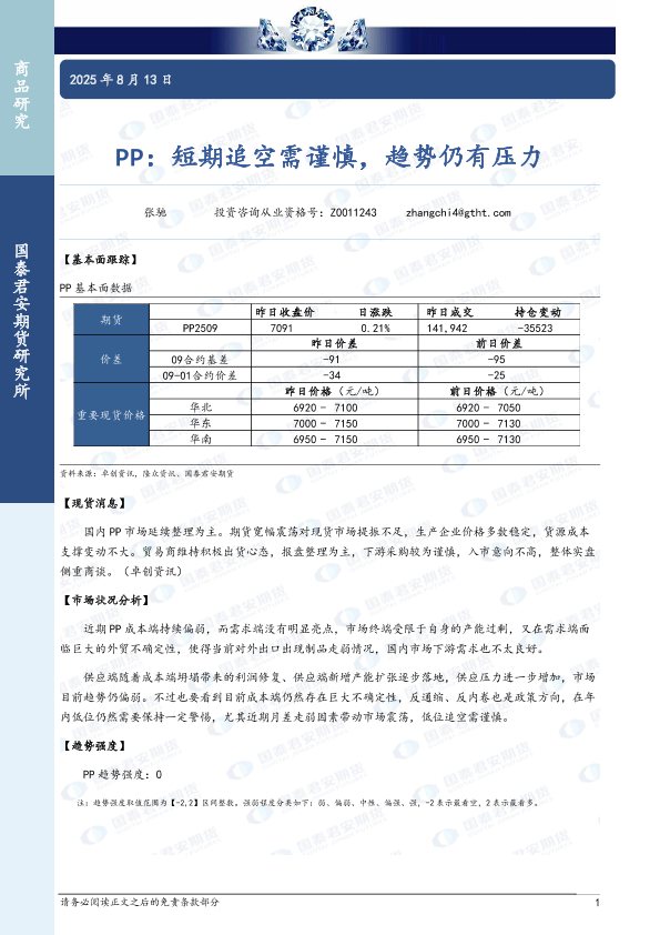 【国泰君安期货】【20250813】PP:短期追空需谨慎,趋势仍有压力-2页
