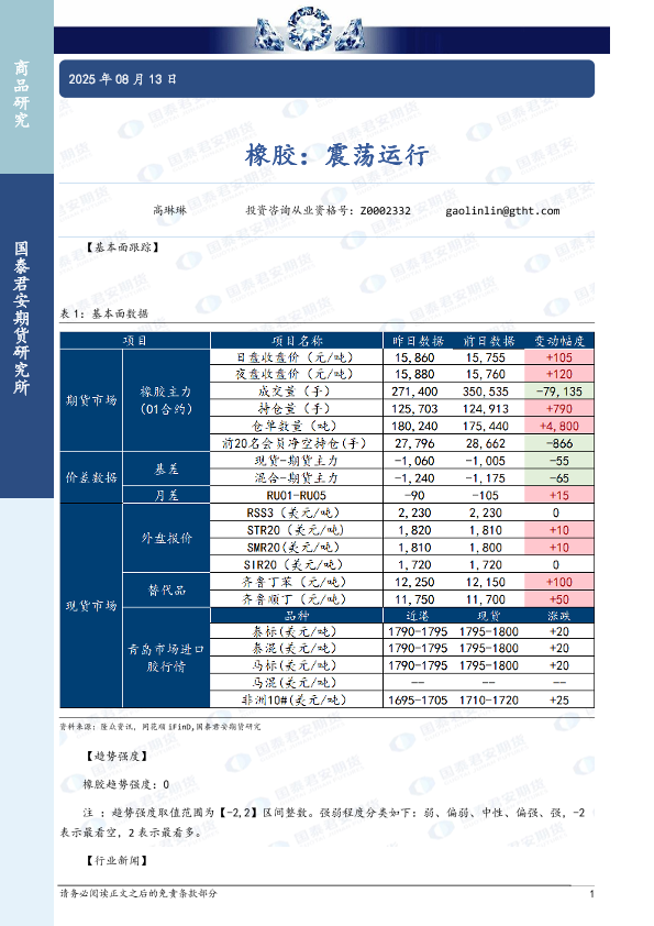【国泰君安期货】【20250813】橡胶:震荡运行-3页