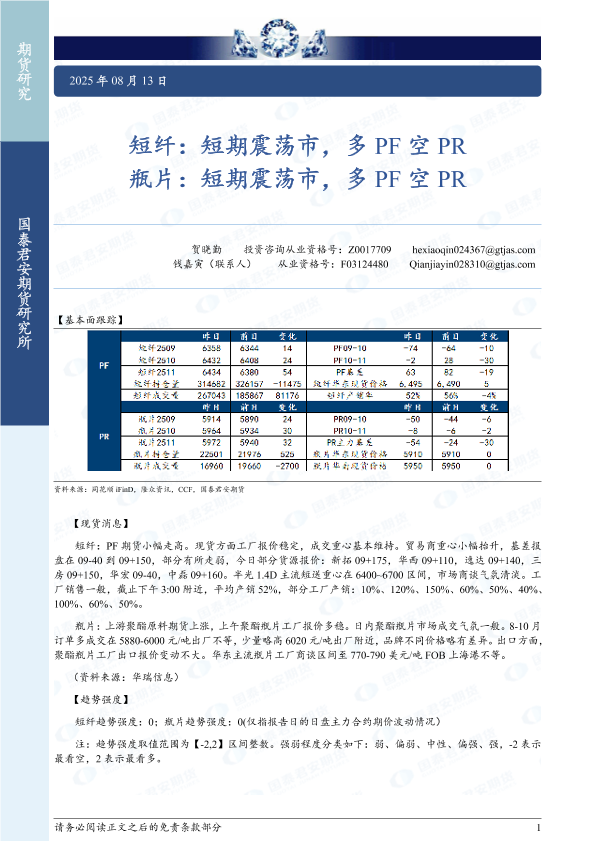 【国泰君安期货】【20250813】短纤_短期震荡市_多PF空PR_瓶片_短期震荡市_多PF空PR-2页